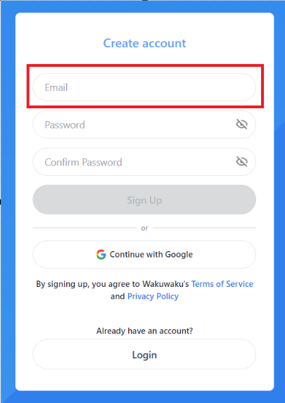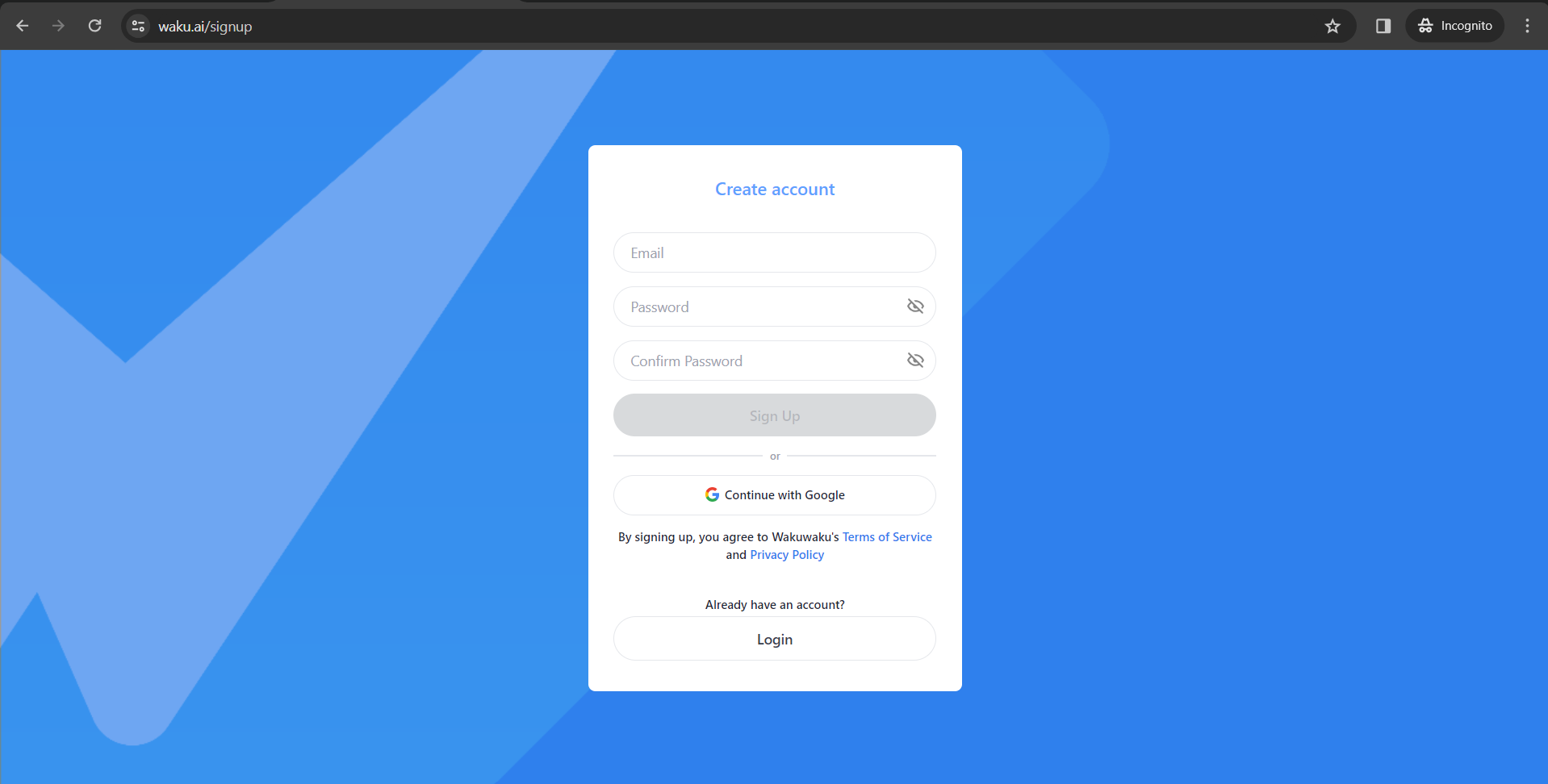 Step 1: Launch the https://www.waku.ai/signup to start.